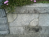 民家の石垣に丸い石。 良く見ると。。。。 石臼? |