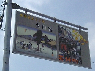 心光寺を過ぎると道路の上部に看板が一枚。 おー、広重の絵。
