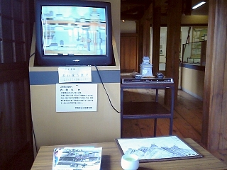 資料館の中に入ると、 「まずはビデオを見てください。」と言われる。 ビデオ鑑賞タイム〜。 お茶まで持ってきていただきました。 |