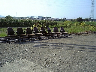 空き地にイスが並ぶ風景。 アウトドア志向の会議室? 天気がいい日は会議もはかどります。 |