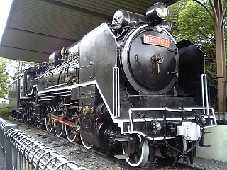 神社の裏には蒸気機関車が! D51 デコイチだ〜。 |
