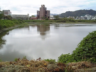 土手に登ってみると上鈎池がある。 お魚いるかなー?