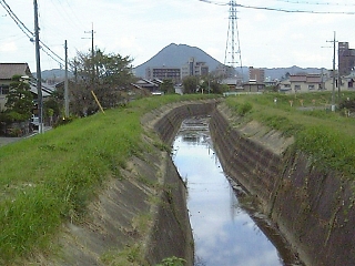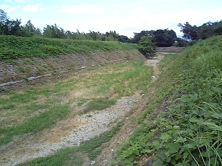 土手を昇ってみる。 見事に水がない。 天井川っていつもこんな感じ。 |