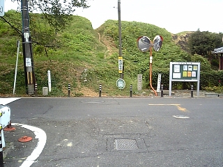 まずは「東経136度 子午線」石柱。 いち、にーのさーん。で子午線を越える。 |