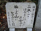 足利義尚 鈎陣所跡になっている公園。 公園って言っても池の土手なんだけどね。 義尚の歌碑いろいろ。 歌ばかり詠むほどヒマだった? |