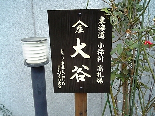 小柿に入ると再び屋号札。 高札場の屋号が大谷?