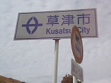 川を渡って堤防から降りて草津宿へ。 左右は高野地蔵尊・横町道標(坂口見附)。