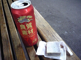 28日目 磐田駅 キリン 良質素材 500ml 選定した麦芽とアロマホップ100%で新たに開発した 発泡酒と大麦を富士山の伏流水で仕込んだスピリッツ をブレンド。これまでにない飲みごたえや麦のうまさ、 クリーミーな泡を実現。アルコール分5%。 2007年5月23日発売。リキュール(発泡性@)。 又一庵のきんつばとともに。 ファミリーマート磐田駅前店[\195] | ||||||||||