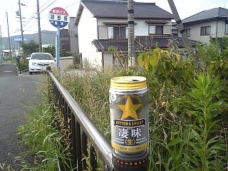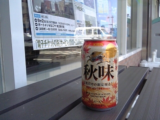 30日目 ファミリーマート前 キリン 秋味 350ml 発売17年目を迎える秋季限定ビール。 通常ビールの約1.3本分の麦芽をたっぷりと使用。 原材料:麦芽、ホップ、米、コーン、スターチ。 アルコール分6% 2007年8月22日発売。 ファミリーマート浜松中央三丁目店[\207] | ||||||||||