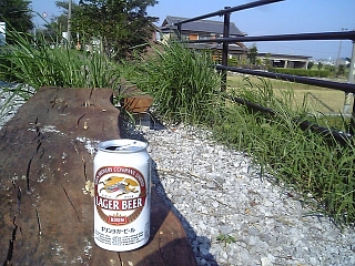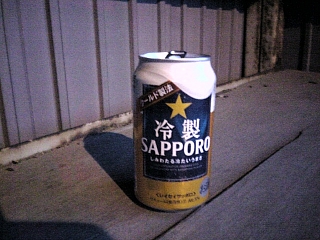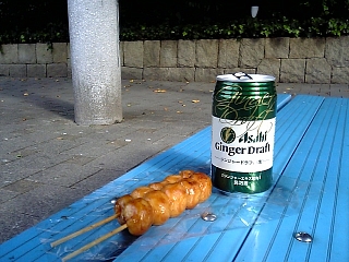 48日目 諏訪公園 アサヒ ジンジャードラフト 350ml ショウガ抽出のジンジャーエキスを配合した発泡酒。 発泡酒本来の「のどごし」にジンジャーの「刺激」「辛さ」を 加え軽快な刺激と爽快感を実現。 原材料:麦芽、ホップ、大麦、大麦エキス、米、コーン、 スターチ、糖類、ジンジャーエキス、香料。 アルコール分5.5% 2008年10月21日発売。 嶋小餅店の団子とともに。 スーパー サンシ 一番街店[\125] | ||||||||||