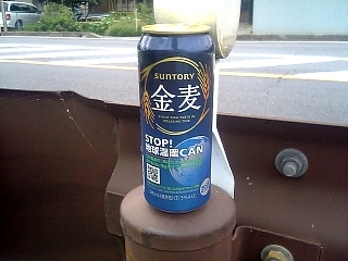 55日目 水口町今郷 サントリー 金麦 500ml ローソン限定 STOP!地球温暖CAN CO2排出権つきビール系飲料。 1缶購入ごとに1kgのCO2がオフセットされ、 購入だけで日本のCO2排出量削減に貢献できる。 2009年7月21日発売。リキュール(発泡性@)。 ローソン水口今郷店[\197] | ||||||||||