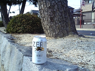41日目 安城市の松並木 キリン 麒麟ZERO 350ml 糖質ゼロで100ml当たり19kcalのカロリーオフも実現。 キリッとした飲み口とホップの爽やかな香りの発泡酒。 原材料:麦芽、ホップ、糖類、大豆たんぱく、酵母エキス。 アルコール分3% 2008年2月20日発売。 デイリーヤマザキ安城東栄店[\161] | ||||||||||