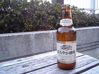 42日目 前後駅 キリン まろやか酵母 330ml 小麦麦芽のフルーティな香りと味わいのチルドビール。 上面発酵ビールを無ろ過でびん詰めし酵母が生きている。 原材料:麦芽(大麦麦芽・小麦麦芽)・ホップ。 アルコール分5%。 APITA豊明店[\248] | ||||||||||