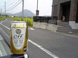 58日目 栗東市六地蔵付近 アサヒ オフ 350ml プリン体85%オフ、糖質70%オフ。 すっきりとした飲みやすさ、麦芽の自然な味わい。 発酵後に製品中のプリン体を除去するのではなく、 発酵によって生まれる自然な味わいを残すことで すっきりと飲みやすい後味に仕上げた。 原材料:発泡酒、スピリッツ(大麦)。 アルコール分3.5%以上4.5%未満 2009年2月24日発売 リキュール(発泡性@)。 鎌田酒店(自販)[\140] | ||||||||||