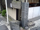 {左}問答河岸跡 北品川1-22-21 しばらく行くと問答河岸跡の碑がある。1640年現在の品川小学校のあたりにあった東海寺を訪れた三代将軍家光が帰りにここにあった河岸から船に乗ろうとした時に見送りの沢庵和尚に問答を交わした。家光が「海近くして如何か是東海寺(遠海寺)」と問うと沢庵がすかさず答えて「大軍を指揮して将軍(小軍)というが如し」と言った。 |