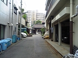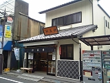 {右}桝翁軒(ますおうけん) 北品川1-2-8 問答河岸跡の右ななめ向かい。嘉永二年(1849) 創業以来同じ場所に店を構え続ける和菓子老舗。秘伝の甘辛の醤油だれをからめた焼だんごは品川宿の味として続いており午前中で売り切れてしまうことが多い。4個一串5本で350円。このあたりが北品川本通り商店会という商店街。今でも江戸時代と同じ道幅で道幅も狭く車は一方通行となっている。商店街はこの後連続して北品川商店街、品川宿場通り南会、青物横丁商店街と続いていく。 |