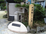 {左}土蔵相模跡 北品川1-22-17 品川宿随一と言われた相模屋という旅籠の跡で幕末には高杉晋作、久坂玄瑞、伊藤博文などが密議をした。外壁が土蔵のような海鼠壁(なまこかべ)だったので土蔵相模と呼ばれた。その後「さがみホテル」となり昭和57年に取り壊され現在はマンション「ニックハイム北品川」&1階がファミリーマート。万延元年(1860)桜田門外の変の水戸浪士らの、文久2年(1863)御殿山の英国公使館焼討ちで高杉晋作ら長州藩士の集合拠点になっている。相模屋の復元模型は品川歴史館(大井6-11-1)に展示されている。 |