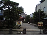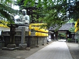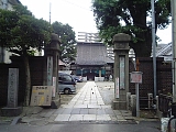 右側小道の先に山門が見える。芝増上寺の末寺で至徳元年(1384)創建。本尊は阿弥陀如来で宝永2年(1705)に鎌倉時代の快慶の系統の仏師が制作。法然上人自作の法然上人坐像もある。明治4年(1871)に建てられた高さ1m21cmの流民叢塚碑がある。天保4年(1833)に始まった飢饉で流浪したのち品川宿で死亡した900余人が法禅寺と海蔵寺に埋葬されうち500余りが法禅寺に埋葬された。昭和9年(1934)に納骨堂が建てられその上に移動。幹囲3m40cm樹高25m樹齢約400年のイチョウが本堂に向かって左側にある。門前に品川小学校発祥の記念碑がある。明治5、6年の頃、都築幾三郎 (つづきいくさぶろう) が善福寺で始めた塾が法禅寺に移り明治7年(1874)東京府に認可された。 |