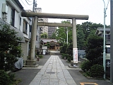 {右}天祖諏訪神社(てんそすわ)南大井1-4-1 浜川橋を渡ってすぐにある。天照大御神、豊受大神、建御名方刀美神、小碓命を祭神とする。以前は立会川を挟み南の鎮守神明宮(天祖社)と北の鎮守諏訪社に分かれていたが昭和40年に合祀された。神明宮の創建は鎌倉幕府以前の1100〜1190年ごろ、諏訪社は江戸時代の土佐藩下屋敷の庭内社に起源している。東海七福神の福禄寿で幸福、高禄、人望、長寿の神として信仰され高給を願うサラリーマン参拝が多い。 |