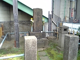 {左}無縁塚 大正5年開業の八丁畷駅の踏切を渡るとすぐにある。江戸時代から戦後にかけて人骨が出土し東京大学の人類学の専門家により江戸時代のものと鑑定された。よく震災、大火、洪水、飢饉、疫病などが起きた川崎では身元不明の大量の死者をまとめて宿場のはずれのこの地に埋葬したらしく昭和9年慰霊塔を地元有志と川崎市で建立した。 |