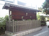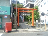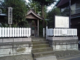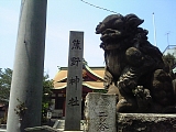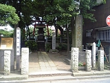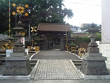 {右}州崎大神 青木町5-29 宮前商店街にある神社。建久2年(1191)源頼朝が安房州崎(千葉県)の安房神社の神をこの地に祠ったのが始まり。祭神は天比理刀売命と天太玉命。現在の社殿は昭和31年(1956)のもの。この神社にあった御神木のアハギがなまり青木町となったと言われる。安房神社の御本霊と州崎大神の御分霊が海上で対面する由縁の祭りである毎年6月のお浜下り(提灯祭り)では重さ約2トン高さ約5mの日本最大級の神輿の周囲に提灯がつけられる。江戸時代には神社前から第一京浜へ通じる参道の先に船着場があり開港してからは横浜と神奈川宿を結ぶ渡船場として賑わった所で海陸警護のための陣屋も造られた。 |