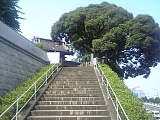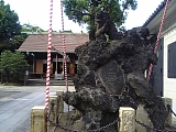 {右}大綱金刀比羅神社(おおつなことひらじんじゃ) 一里塚(7) 台町7-34 青木橋を渡り国道1号を渡ったあと左に20m行った早慶外語ゼミとやまざき歯科クリニックの間の道が旧東海道。源頼朝が荒海を鎮めるため文治4年(1188)に創建。大物主神、金山彦神などを祀る。東海道を行き交う人々は旅の安全を、船乗りたちは海上安全を祈願した。元は飯綱大権現と金刀比羅大権現とに分かれており明治2年それぞれ大綱神社、金刀比羅神社に改称、明治43年崖崩れで金刀比羅神社が倒壊し翌年山上にあった大綱神社を現在地に移築し両社を合祀した。湧水池奥の崖下の洞には横浜弁財天があり他の境内社である三宝荒神社、竜神社、稲荷社と合わせ外陣四社と呼ぶ。空襲で焼失した顔の長さ4尺5寸(136cm)巾3尺(91cm)の大天狗像は社殿横の大木を削り復元されている。江戸時代には神社前に一里塚があった。 |