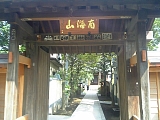 {右・寄}海運山 能満寺[高野山真言宗]東神奈川2-32-1 良泉寺過ぎ2本目あたりの小道を右折するとある。正安元年(1299)土地の有力者・内海新四郎光善が海中より木像を拾い上げ家へ持ち帰ったところ霊感の強い娘が千葉・清澄寺(現:日蓮宗大本山)の霊木だと言うので寺を建て像を祀った。本尊は高さ5寸の木造虚空蔵菩薩坐像。本堂は昭和58年に建て替えられたもの。門前の右に芭蕉の句碑「父母のしきりに恋し雉子の声」がある。高野山奥之院参道にある安永4年(1775)書画家・池大雅(いけのたいが)の揮毫によって建立された句碑の複製。四国の88箇所遍路巡礼にならって川崎、横浜、逗子、鎌倉、藤沢の88の寺院を霊場に定めた「新四国東国八十八箇所」の第18番礼所。 |
