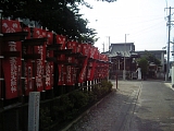 {右}道念稲荷神社 生麦4-27-18 正泉寺の斜め向かいで大小19の鳥居が並ぶ。旅の途中の僧・道念により建てられた。入口右側に寛文8年(1668)左側に明和3年(1766)建立の地蔵講供養仏がある。社殿は昭和6年(1931)大工の白川利三郎と兄庄吉により改築された。近くの神明社(生麦3-13)とともに横浜市無形民俗文化財「蛇も蚊も(じゃもかも)祭」を伝えている。毎年6月第1日曜日。約300年前に疫病が流行り萱で作った蛇体に悪を封じ込めて海に流したことから雨乞い、厄病退散、子供の成育などを祈念する祭となった。現在も萱を遠方から取寄せ長さ20m胴囲1mの蛇体を作り目に貝殻、角に御神木の枝、耳に琵琶の葉、舌に菖蒲の葉、尾に赤黒の木を付け大蛇を作る。神明社隣りの生麦神明公園には大蛇のモニュメントがある。 |