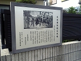 {右}生麦事件発生現場 道念稲荷神社から300mほど行った民家の塀に案内板がある。文久2年(1862)8月21日川崎大師参りに行く途中に英国商人リチャードソンほか3名は藩主の父・島津久光の行列の前を馬に乗ったまま横切ったため藩士に斬りつけられた。発生後イギリスは幕府に10万ポンド薩摩藩に2万5千ポンドと引渡しを要求したが幕府は応じたものの薩摩藩は応じず翌年の薩英戦争に発展した。案内板は第一京浜を挟んで生麦駅前近くにある生麦事件参考館(生麦1-11-20)の館長浅海武夫氏が建てたもの。参考館は平成6年(1994)に酒店を営んでいた浅海氏が20数年かけて集めた生麦事件に関する資料を公開する私設の資料館。 |