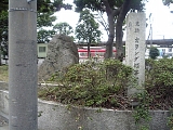 {左}市場村一里塚跡 一里塚(5) 市場橋バス停(熊野神社前バス停の次)そばにある。明治9年(1877)地租改正にあたり払い下げられ昭和初期まで塚の上には榎の大木が繁茂していたが今は左側の土盛りがわずかに残っている。昭和8年(1933)地元の名士添田坦の書による「武州橘樹郡市場村一里塚」の碑が建立された。その後も風雨で盛土が崩れ続けたので昭和25年地元の有志が大谷石で土留めをし、さらに昭和38年に補修を加えた。右側の塚があったところは理容キタニになっている。この地域は古くから海辺にあって魚、塩の収穫も豊かで天文年間(1532-1555)には魚貝の市も開かれたため村名も市場と呼ばれるようになった。 |