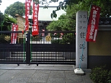 ![]() | {右・寄}妙湖山 浄瀧寺(じょうりゅうじ)[日蓮宗] 幸ケ谷17-5 宗興寺のさらに滝の川上流にある。文応元年(1260)妙湖尼が日蓮の弟子となり自分の庵を法華経の道場としたのが始まり。本尊は釈迦・多宝両如来と十界曼陀羅。もとは東海道沿いにあったが江戸に入る徳川家康に移転を命じられ青木本陣の鈴木家の寄進で現在地へ移転した。開港時はイギリス領事館となりイギリス領事手植えの松(多行松・たぎょうまつ)が境内にあったが空襲で焼失した。門前にイギリス領事館跡碑がある。本堂は昭和30年(1955)に建てられたもの。 |