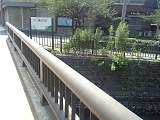 上台橋(かみだいばし) 神奈川台関門跡から下り坂となり途中に横浜駅と国道1号線を結ぶ道路の上にかかる上台橋を渡る。東海道の下に交差する形で車道が走っており橋は昭和5年(1930)下の道路を開削した際に架けられた。下の道路の地下には横浜市営地下鉄も走っている。神奈川宿歴史の道の西の起点でもあり昭和31年コンクリート造りに架け替えられた橋の欄干は現在青海波にデザインされている。橋を渡った右手が小広場になっており神奈川宿歴史の道の解説パネルがある。江戸時代はこの付近に神奈川宿の上方見附(京入口)が置かれた。 |