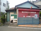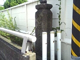 {左}旧元町橋跡 樹源寺を過ぎてしばらく行くと保土ヶ谷消防団第一分団第1−10班と書かれた倉庫があり、その横に案内柱がある。明治以前はここを今井川が横切っており元町橋があって橋を境にして元保土ヶ谷と元保土ヶ谷橋向と地名が分かれていた。東海道線の鉄道工事の際に川が流域変更され元町橋も現在の場所に移動した。 |