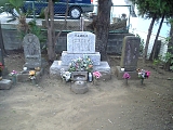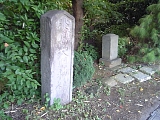 {左・寄}投込塚跡 坂を上りきり境木中学校に突き当たったら東海道から外れ左折して200mほど行くと左側にある。四坪ほどの敷地に投込塚之跡の石碑を中心に宝永7年(1710)の庚申塔、天保9年(1838)の馬頭観音、石仏、石地蔵、卒塔婆などが並ぶ。権太坂がきつかったため道中行倒れた人馬を葬ったとされる場所で昭和36年(1961)の宅地造成時に大量の人骨や牛馬の骨が出土した。発掘された人骨は東福寺(戸塚区平戸町299)に埋葬され無量光仏碑が建立されている。 |