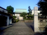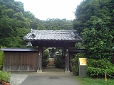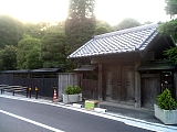 {左・寄}萩原代官屋敷道場跡 平戸3-54-1 焼餅坂の一本左側の脇道階段を下りすぐに右折、竹林を左に見て道なりに坂を下りていき下りきったら左折すると正面に瓦葺の武家門がある。萩原家は旗本杉浦越前守の代官を代々勤め幕末の当主・萩原行篤は嘉永4年(1851)に直心影流(じきしんかげりゅう)の免許皆伝を得て道場を開いた。道場には名剣客が数多く訪れ安政5年(1858)には近藤勇も立寄ったが将軍家定が死去したばかりで試合は禁止されていた。所蔵の剣客名には「八月御停止中に付試合無之候」と近藤の直筆が残されており門前の案内板にその写真が転写されている。現在16代当主が雑木・竹工房を営んでいる。