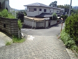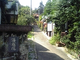 品濃坂の続き 品濃橋を渡り左の階段を下りてすぐに右へ入る道が先ほど品濃坂の階段から見えた対岸の道。道に入るとすぐに二又路を左に分岐する。この辺りも下り坂(品濃坂)でかつては急で長い坂であったことがわかる。 |