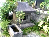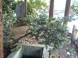 {右・寄}山王祠の遺構 戸塚町5132 戸塚駅東口入口信号を過ぎ太田商店の手前を右折、矢部町内会館を過ぎ飯沼鍼灸治療院の案内に従い左折していくと右手の治療院の前にある。北東の方角は鬼が出入りする方角として鬼門とされ戸塚宿の江戸側がちょうど北東なので鬼門よけとして承応年間(1652-55)に祠が建てられた。当初は宿場街の北側の山王山と呼ばれる小高い丘の頂上にあったが丘は宅地化で削られた。手前の手水鉢は安政2年(1855)のもので「本宿食売旅籠屋中」とあり宿場の商売繁盛を願い寄進されたと考えられる。 |