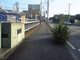 赤関橋 国道1号線に一瞬合流し赤関橋を渡る。平戸永谷川(柏尾川)は江戸時代にはこのあたりでは赤関川、永谷川と呼ばれ赤関橋は天保年間の「新編相模国風土記稿」によると長さ5間(9m)幅3間(5.5m)の土橋だった。平成16年〜18年まで改架と周辺の護岸工事中。赤関橋を渡ったらすぐ左に分岐する細い道が旧東海道(写真)。250mほど行くと再び国道1号に合流する。 |