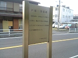 {左}戸塚一里塚跡 (10) 国道沿いの歩道に金属プレートの案内板がある。ここの両側にあった一里塚は道路拡張時に跡形もなく削られた。 |
