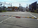 戸塚駅踏切 やがて戸塚駅横の踏切を渡る。開かずの踏切として有名で国道1号バイパス建設のきっかけにもなった。2013年までの戸塚駅前地区の区画整理事業として高架化される予定になっている。踏切を渡り左に少し入ったところにある酒屋の松本屋は戸塚宿ができた頃は旅籠だった。現在は古い黒塗りの蔵が東海道側に面している。 |