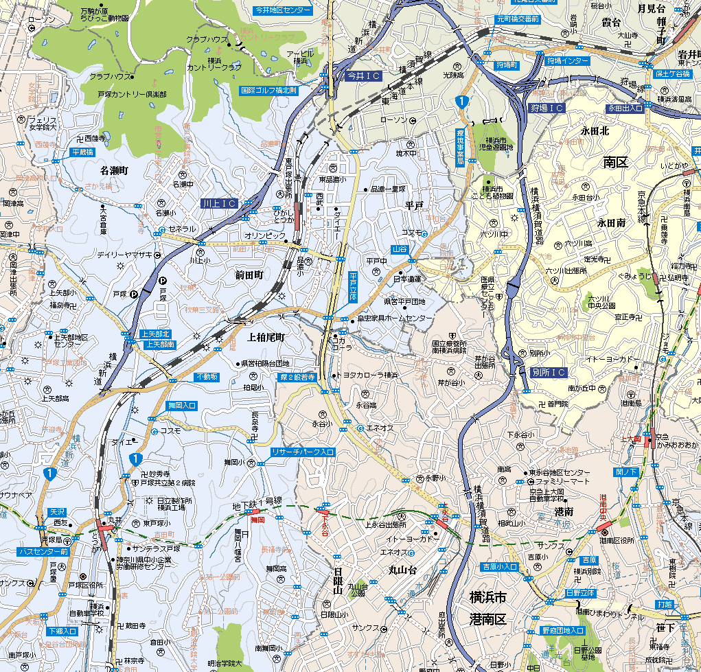 戸塚宿 本陣2脇本陣3旅籠75家数613人口2906[天保14年(1843)] 日本橋から5つ目の宿場町で成立は隣宿である保土ヶ谷宿・藤沢宿に比べ若干遅く慶長9年(1604)。江戸〜小田原間の中間にあたり「権太坂」と「大坂」の難所に挟まれていたため休憩や宿泊客で賑わった。「お江戸日本橋七つ立ち」して一般的な旅人が最初に泊まる所がこの戸塚宿であり東海道中膝栗毛の弥次さん喜多さんも1日目はここに宿泊した。また大山道・鎌倉往還との分岐点であり参拝客でもにぎわっていた。宿内は20丁19間(約3.5km)中心は戸塚宿消防署付近。 |