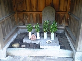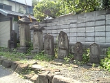 {左・寄}法谷山祥瑞院 永勝寺 [浄土真宗本願寺派]本町4-4-15 JA手前の小道を左折して道なりに歩いていくと左側にある。親鸞上人が一時逗留していたという由緒ある鎌倉の一向堂が享禄年間(1528-32)の戦乱で焼けてしまい後に真海がこの地で再興したのが起こり。本尊阿弥陀如来座像。境内すぐ左に飯盛女の39基の墓がコの字形に取り巻いており多くの墓石は宝暦11年から享和元年まで(1761-1801)のもので飯盛女の戒名と「施主小松屋源蔵」の文字が刻まれている。小松屋は本町郵便局の隣「らーめん湘や(本町1-4-25)」にあり他にも藤沢宿では49軒の旅籠のうち27軒で飯盛女を2名づつ雇っていた。本堂左には太子堂があり聖徳太子像は親鸞上人の作と伝わる。 |