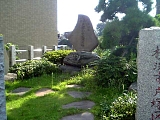 {右}遊行寺 敵御方(てきみかた)供養塔 坂の途中に遊行寺東門がある。遊行寺は正式には「藤沢山無量光院清浄光寺(とうたくさんむりょうこういんしょうじょうこうじ)と言い呑海が正中2年(1325)に遊行(全国行脚の布教)した引退後の住まいとして開山。開基は俣野五郎景久。東門を入って左側に柵で囲まれた国指定史跡の供養塔がある。大きく「南無阿弥陀仏」と彫られている。応永23年(1416)上杉氏憲(禅秀)が足利持氏に対し反乱した時に15代尊恵(そんね)上人が敵味方の区別なく負傷者を収容して治療し戦死者を平等に弔い応永25年供養塔を建てた。両軍の死者を一箇所に弔った日本で最古のもの。 |