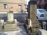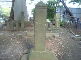{右}第六天宮 戸塚宿上方見附跡を過ぎると大坂の上り坂になりしばらく行くとある。境内左に嘉永7年(1854)建立の藤行(とうぎょう)翁之碑がある。上3分の1程度から亀裂が生じており昭和58年にボルトなどで修復された跡がある。手水石は天保11年(1840)のもの。さらに行くと坂の右手に小さな稲荷神社もある。 |