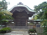 {右}遊行寺 本堂 西富1-8-1 遊行寺は永正10年(1513)に戦火で全焼。その後はは再建されることなく慶長6年(1601)に藤沢宿が定められた後の慶長12年(1607)94年ぶりに再建され時宗の総本山として発展した。本尊は高さ184cmの阿弥陀如来座像で慈覚大師の作。本堂は木造としては東海道随一で昭和12年(1937)建造。前の広場には大イチョウがあり雄株で高さ16m幅6.83m樹齢300〜700年で天然記念物に指定されている。かつては高さ31mもあったが昭和57年の台風で上部が折損した。本堂左前には延文元年(1356)鋳造の高さ167cm口径92cmの梵鐘がある。永正10年(1513)小田原北条氏に陣鐘とし摂取されその後は足柄の寿昌寺にあったが寛永3年(1626)返還された。 |
