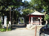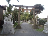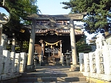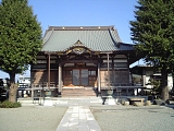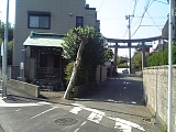 {右}第六天神社 十間坂3-17-18 十間坂2丁目信号を過ぎ十間坂歩道橋の手前にある。創建は不明だが元弘3年(1333)新田義貞の鎌倉攻めの時焼失の記録がある。淤母陀琉命と阿夜訶志古泥命を祀り山岡鉄舟が寄進した掛軸も社宝として所蔵されている。社殿左に欅造りの八坂神社がありもとは神社の西にあったが明治中頃に合祀された。社殿右に元禄2年(1689)寛政12年(1800)の庚申塔2基と文政3年(1820)の双体道祖神、顔がペイントされた自然石が頭部に置かれた地蔵数体などの石塔、石仏が並ぶ。灯籠は文化9年(1812)狛犬は昭和8年(1933)のもの。年末に行なわれる歳の市(だるま市)や2月の節分祭が盛大に行われる。境内右には幼稚園が併設されている。 |