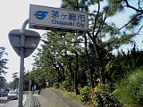 茅ヶ崎松並木 すぐに茅ヶ崎市に入り赤松町の松並木になる。ところどころ歩道が車道より高くなったり松だけ高くなったり歩道の真ん中に松が生えていたりする。松並木は茅ヶ崎駅までに他にも本村町三丁目(茅ヶ崎高校、東陶茅ヶ崎工場付近)茅ヶ崎2丁目(JR相模線線路を横断した後)を中心に整備されており中には推定樹齢400年幹周2.2mの松もある。茅ヶ崎高校手前には松並木を描いた広重の竪絵東海道「南湖の左富士」の浮世絵と案内板がある。 |