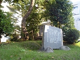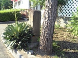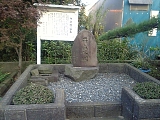 {右}明治天皇馬入御小休所趾 榎木町9-41 ホテルサンライフガーデン入口左側に石碑がある。明治6年(1873)と明治11年に明治天皇が休憩した杉山家の屋敷跡で明治6年は皇后も一緒だった。杉山家は幕末に相模川の舟行を利用して石油と砂糖の大問屋(現:杉山商事)となり石垣に囲まれた大邸宅を建て「石垣」が屋敷の代名詞だった。明治15年(1882)には杉山泰助が江陽銀行(のちに横浜銀行の前身と合併)を屋敷内に創設した。碑は政治家金子堅太郎の揮毫で昭和15年泰助の孫久吉が建立した。江戸時代には馬入村の川会所(渡し舟の役所)があった場所で川名主3人川年寄3人船頭は昼夜を問わず16人が詰め近くに川高札もあった。