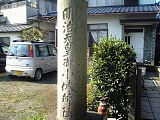 {右}明治天皇御小休所址 しばらく歩くと東小和田バス停手前の民家の庭先にある。この先の東小和田交差点で東海道と交差しているのも鎌倉道で右は京都、左は辻堂駅前を通り鎌倉の極楽寺口へ通じる。 |