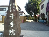 {左}天応山神保寺 千手院 [高野山真言宗]代官町1-4 熊野神社の石柱があるファミリーマートさかまき小和田店の向かいにある。17世紀初め元栄和尚が開山し永宝8年(1680)に堅岸和尚が建立した。本尊は十一面千手観世音菩薩座像。関東大震災で本堂が倒壊し現在の本堂はその部材を使い再建された。境内右に閻魔像と十王像を祀る閻魔十王堂があり古くから信仰が篤く閻魔像は夏の大山参りの季節になると北に1.5kmほど離れた大山道沿い(現:新湘南バイパス付近)まで出張開帳していた。他に稲荷大明神や延宝7年(1678)延宝8年(1679)貞享2年(1685)元禄11年(1698)宝永5年(1708)宝暦6年(1756)などの石仏群がある。四国の88箇所遍路巡礼にならって藤沢、鎌倉、寒川、茅ヶ崎の88の寺院を霊場に定めた相模国準四国88箇所の第24番。 |